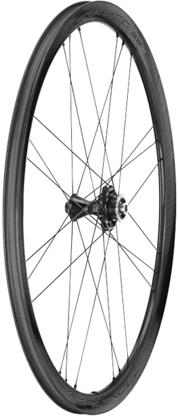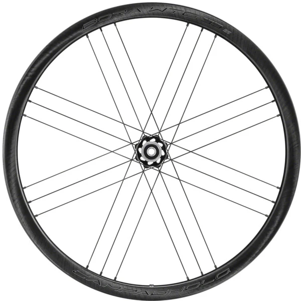 Campagnolo BORA WTO 33 Front Wheels. Each component of these wheel has been optimized in the wind tunnel in order to improve aerodynamic performance. The wheel features carbon rims with a unidirectional aerodynamic finish, new aerodynamic aluminum hubs, and the ceramic USB cup-and-cone bearing system: every design choice has been made with a view to optimizing performance. The profile of the rim, which has an internal width of 19mm, corresponds perfectly with 23 mm, 25 mm and 28 mm tires. In addition, with the 2-Way Fit version, Campagnolo offers its tried-and-tested technology with full compatibility with clincher and tubeless tires.