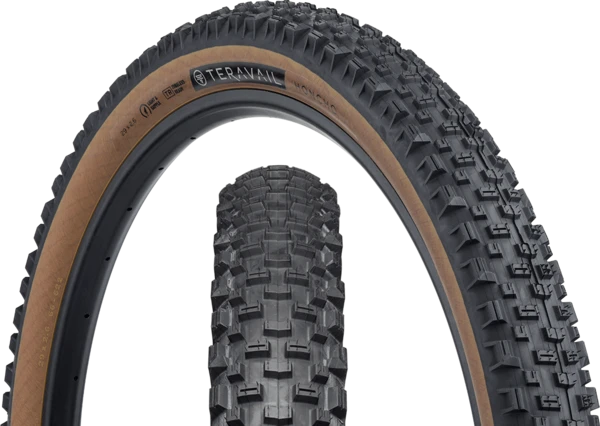 – Transition lugs are tall and spaced out to shed mud; horseshoe siping conforms to the trail and maintains braking traction.